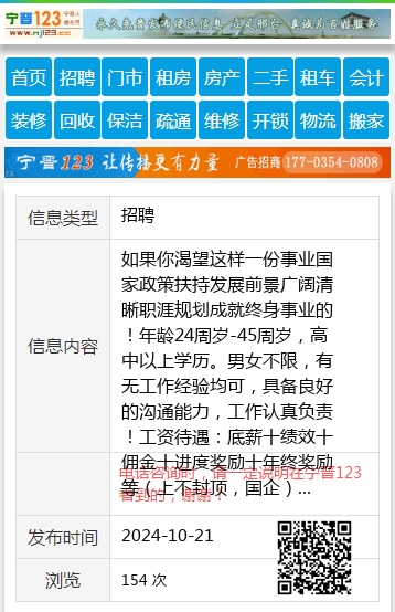 如果你渴望这样一份事业国家政策扶持发展前景广阔清晰职涯规划成就终身事业的!年龄24周岁-45周岁,高中以上学历。男女不限,有无工作经验均可,具备良好的沟通能力,工作认真负责!工资待遇:底薪十绩效十佣金十进度奖励十年终奖励等(上不封顶,国企)工作时间早8:00—上午10:30要求形象好气质佳,工作认真负责,咨询电话.微信同步;13945589688合适您就来!我们为您提供宝贵的发展空间!月薪过万元不是梦!非诚勿扰!名额有限!富13945589688 【电话咨询时,请一定说明在七台河信息网看到的,谢谢!】 |