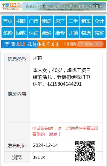 本人女,40岁,想找工资日结的活儿,老板们给我打电话吧。我15804644291