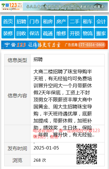 大商二楼招聘了珠宝导购半天班,有无经验均可免费培训晋升空间大一个月带薪休假2天年保底,工资上不封顶男女不限薪资丰厚大商中国黄金、周大生招聘珠宝导购,半天班待遇优厚,底薪加提成,带薪休假,加班补助,绩效奖,生日休,保险,年假,晋升快,有无经验均可,男女不限,勤奋有责任心,工作上不封顶,欢迎加入刘店长18145417779 【电话咨询时,请一定说明在七台河信息网看到的,谢谢!】 |