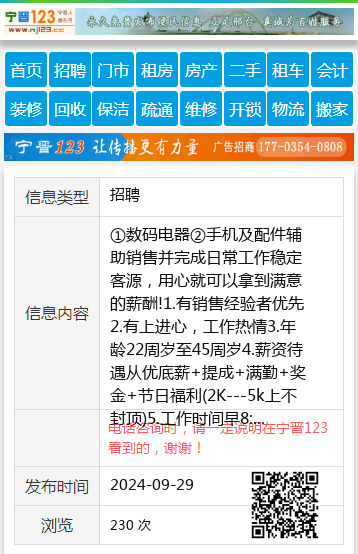 ①数码电器②手机及配件辅助销售并完成日常工作稳定客源,用心就可以拿到满意的薪酬!1.有销售经验者优先2.有上进心,工作热情3.年龄22周岁至45周岁4.薪资待遇从优底薪+提成+满勤+奖金+节日福利(2K---5k上不封顶)5.工作时间早8:00晚5:00徐经理18646446333 【电话咨询时,请一定说明在七台河信息网看到的,谢谢!】 |