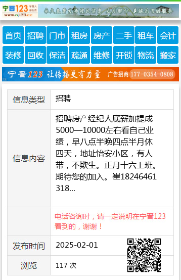 招聘房产经纪人底薪加提成5000—10000左右看自己业绩,早八点半晚四点半月休四天,地址怡安小区,有人带,不欺生。正月十六上班。期待您的加入。崔18246461318 【电话咨询时,请一定说明在七台河信息网看到的,谢谢!】 |