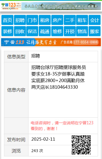 招聘台球厅招聘摆球服务员要求女18-35岁做事认真踏实底薪2800+200满勤月休两天店长18104643330
