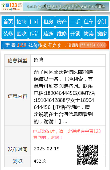 茄子河区邸氏骨伤医院招聘保洁员一名,干净利索,有意者可到本医院咨询。联系电话:18904644456联系电话:19104642888李女士18904644456 【电话咨询时,请一定说明在七台河信息网看到的,谢谢!】 |