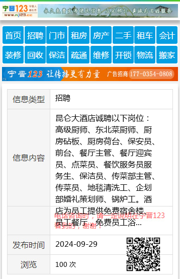 昆仑大酒店诚聘以下岗位:高级厨师、东北菜厨师、厨房砧板、厨房荷台、保安员、前台、餐厅主管、餐厅迎宾员、点菜员、餐饮服务员服务生、保洁员、传菜部主管、传菜员、地毯清洗工、企划部婚礼策划师、锅炉工。酒店为员工提供免费宿舍楼、员工餐厅,免费员工浴池等各项福利待遇,欢迎你的加入。王女士13946555328 【电话咨询时,请一定说明在七台河信息网看到的,谢谢!】 |