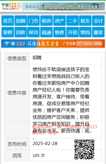 想找份不耽误接送孩子的宝妈看过来想挑战自己收入的你看过来薪悦房产中介招聘房产经纪人啦!你需要负责房源开发、客户接待、带看房源、促成交易等房产经纪业务;维护客户关系,提供优质的房产咨询服务;积极学习房产相关知识,提升自身专业水平。薪资待遇:底薪+高额绩效提成,上不封顶!月休四天,公司缴纳三险;工作时间:上午8:00-11:30下午13:00-17:00工作地址:七台河市桃山区桃东街奋斗路六小东门对面薪悦房产联系电话:18714641100(微信同号)薪悦18714641100 【电话咨询时,请一定说明在七台河信息网看到的,谢谢!】 |