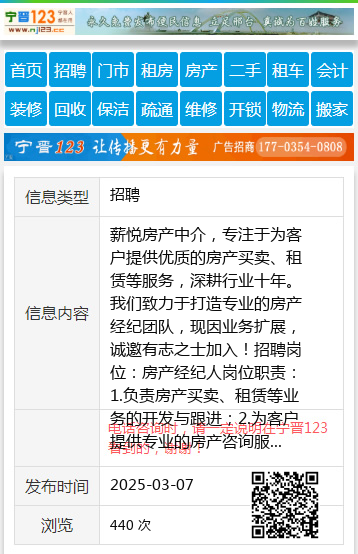 薪悦房产中介,专注于为客户提供优质的房产买卖、租赁等服务,深耕行业十年。我们致力于打造专业的房产经纪团队,现因业务扩展,诚邀有志之士加入!招聘岗位:房产经纪人岗位职责:1.负责房产买卖、租赁等业务的开发与跟进;2.为客户提供专业的房产咨询服务;3.维护客户关系,提升客户满意度;任职要求:1.年龄18-45岁,学历不限,有销售经验者优先;2.热爱销售工作,具备良好的沟通能力和服务意识;3.有责任心,抗压能力强,具备团队合作精神;4.对房产市场有一定了解者优先。薪资待遇:1.底薪+高额提成,收入上不封顶;2.月休4天;3.缴纳三险;4.提供专业的岗前培训及职业发展空间。工作地点:桃山区第六小学东门对面薪悦房产中介联系方式:18714641100欢迎有意者来电咨询或直接到店面试!薪悦房产中介期待您的加入,与我们一起共创辉煌!薪悦18714641100 【电话咨询时,请一定说明在七台河信息网看到的,谢谢!】 |