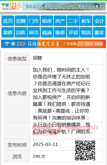 加入我们,做时间的主人!你是否厌倦了无休止的加班?你是否渴望在房产经纪行业找到工作与生活的平衡?加入薪悦房产,开启你的新篇章!我们提供:薪资待遇:高底薪+高提成,让你劳有所得!完善的培训体系:从行业小白到销售精英,我们为你保驾护航!广阔的发展平台:完善的晋升机制,助你实现职业梦想!轻松愉快的工作氛围:年轻活力的团队,让你工作更开心!更重要的是,加入我们工作时间好,工作家庭两不耽误。我们相信,拥有更多自由时间,才能更好地服务客户!我们相信,你的生活,值得拥有更多精彩!招聘岗位:房产经纪人工作时间:上午:8:30-11:30下午:13:00-16:30联系方式:18714641100公司地址:七台河市桃山区桃东街奋斗路六小东门对面薪悦房产加入我们,做时间的主人,成就更好的自己!薪悦18714641100 【电话咨询时,请一定说明在七台河信息网看到的,谢谢!】 |