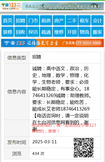 诚聘:高中语文,政治,历史,地理,数学,物理,化学,生物老师,要求:必须能长期稳定,有事业心。18746413269诚聘:助理教师。要求:长期稳定,能吃苦,能成长艾老师18746413269 【电话咨询时,请一定说明在七台河信息网看到的,谢谢!】 |