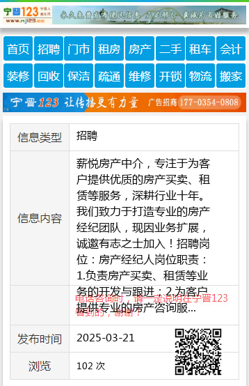薪悦房产中介,专注于为客户提供优质的房产买卖、租赁等服务,深耕行业十年。我们致力于打造专业的房产经纪团队,现因业务扩展,诚邀有志之士加入!招聘岗位:房产经纪人岗位职责:1.负责房产买卖、租赁等业务的开发与跟进;2.为客户提供专业的房产咨询服务;3.维护客户关系,提升客户满意度;任职要求:1.年龄18-45岁,学历不限,有销售经验者优先;2.热爱销售工作,具备良好的沟通能力和服务意识;3.有责任心,抗压能力强,具备团队合作精神;4.对房产市场有一定了解者优先。薪资待遇:1.底薪+高额提成,收入上不封顶;2.月休4天;3.缴纳三险;4.提供专业的岗前培训及职业发展空间。工作时间:上午8:30-11:30下午13:00-16:30工作地址:七台河市桃山区桃东街奋斗路六小东门对面薪悦房产联系电话:18714641100(微信同号)欢迎有意者来电咨询或直接到店面试!薪悦房产中介期待您的加入,与我们一起共创辉煌薪悦18714641100 【电话咨询时,请一定说明在七台河信息网看到的,谢谢!】 |