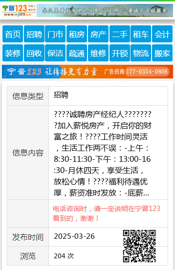 ????诚聘房产经纪人????????加入薪悦房产,开启你的财富之旅!????工作时间灵活,生活工作两不误:-上午:8:30-11:30-下午:13:00-16:30-月休四天,享受生活,放松心情!????福利待遇优厚,薪资准时发放:-底薪+提成,收入无上限,你的努力决定你的收入!-缴纳三险,保障你的未来!-无经验?没问题!我们提供带薪培训,快速上手,成就你的职业梦想!????为什么选择薪悦房产?团队氛围好,同事如家人,工作更舒心!客户资源丰富,助你快速开单,赚取高额佣金!联系电话:18714641100????薪悦房产,你的未来,从这里开始!????薪悦18714641100 【电话咨询时,请一定说明在七台河信息网看到的,谢谢!】 |