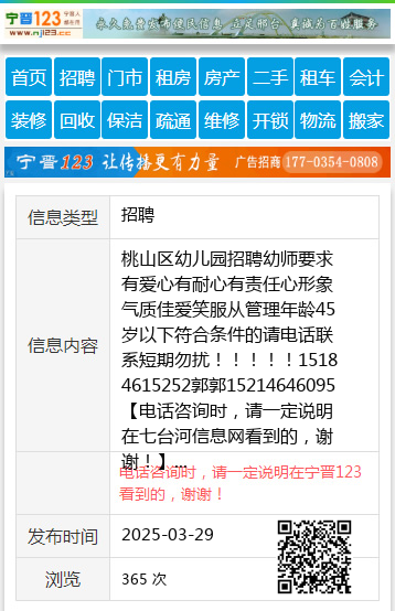 | 防骗提醒: | 七台河信息网(www.qitaihe.cc)提醒您:手工活、网络兼职、刷单,都是骗子!凡以各种名义收取费用的都是骗子!找工作是往兜里挣钱,让你往外掏钱的都是骗子!异地招聘请提高警惕,谨防诈骗! |