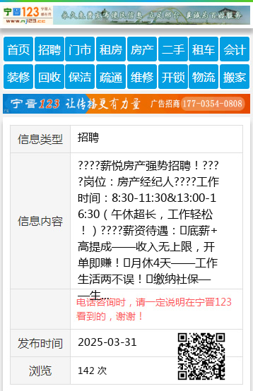 ????薪悦房产强势招聘!????岗位:房产经纪人????工作时间:8:30-11:30&13:00-16:30(午休超长,工作轻松!)????薪资待遇:✔底薪+高提成——收入无上限,开单即赚!✔月休4天——工作生活两不误!✔缴纳社保——生活无忧!????我们期待这样的你:✅热爱销售,沟通能力强;✅有房产经验优先,但无经验可带薪上岗,一对一免费培训;✅目标感强,想挑战高XIN!????加入我们,你将获得:✔专业培训,快速上手;✔优质客户资源,开单更容易;✔团队氛围超棒,赚钱更快乐!????机会不等人!快来加入薪悦房产,一起实现财富自由!????速联:18714641100(微信同号)????地址:桃山区奋斗路第六小学东门对面????高XIN不是梦,行动才能赢!马上加入,开启你的赚钱之旅!????薪悦18714641100 【电话咨询时,请一定说明在七台河信息网看到的,谢谢!】 |