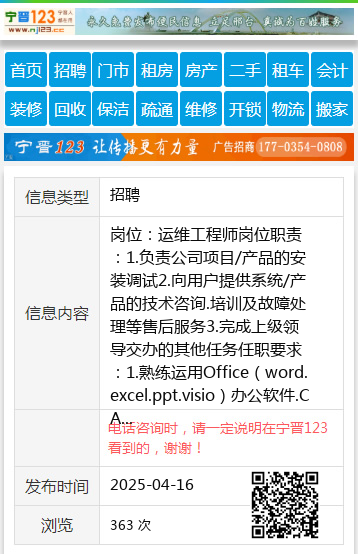岗位:运维工程师岗位职责:1.负责公司项目/产品的安装调试2.向用户提供系统/产品的技术咨询.培训及故障处理等售后服务3.完成上级领导交办的其他任务任职要求:1.熟练运用Office(word.excel.ppt.visio)办公软件.CAD.PS等会基础操作2.能服从公司安排,适应全国范围内出差3.吃苦耐劳,踏实肯干,有责任心4.电子工程.通信工程.机电一体化相关专业5.中职技校以上学历有相关行业及专业工作经历优先6.具有良好语言表达.沟通能力.自我学习能力强薪酬福利:薪资:固定工资4-8K+出差补贴其他福利:五险、员工福利、带薪年假、培训、晋升另招聘矿山机械设备销售人员,要求大专学历,掌握电脑,能长期工作,人品好,责任心强,沟通能力强,自我学习能力强,有上进心,有团队合作意识,无不良嗜好。同时招聘销售内勤人员,能熟练操作办公软件,制作标书,薪资面议。简历发送:597120005@qq.com联系电话:18945585519吴女士18945585519 【电话咨询时,请一定说明在七台河信息网看到的,谢谢!】 |
