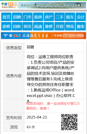 岗位:运维工程师岗位职责:1.负责公司项目/产品的安装调试2.向用户提供系统/产品的技术咨询.培训及故障处理等售后服务3.完成上级领导交办的其他任务任职要求:1.熟练运用Office(word.excel.ppt.visio)办公软件.CAD.PS等会基础操作2.能服从公司安排,适应全国范围内出差3.吃苦耐劳,踏实肯干,有责任心4.电子工程.通信工程.机电一体化相关专业5.中职技校以上学历有相关行业及专业工作经历优先6.具有良好语言表达.沟通能力.自我学习能力强薪酬福利:薪资:固定工资4-8K+出差补贴其他福利:五险、员工福利、带薪年假、培训、晋升另招聘矿山机械设备销售人员,要求大专学历,掌握电脑,能长期工作,人品好,责任心强,沟通能力强,自我学习能力强,有上进心,有团队合作意识,无不良嗜好。同时招聘销售内勤人员,能熟练操作办公软件,制作标书,薪资面议。简历发送:597120005@qq.com吴女士18945585519 【电话咨询时,请一定说明在七台河信息网看到的,谢谢!】 |