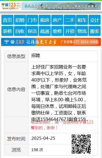 上好佳厂家招聘业务一名要求高中以上学历,女,年龄40岁以下,形象好,业务范围,处理厂家与代理商之间一切事宜,熟悉七台河市场环境,早上8.00-晚上5.00,每周日休息,试用期转正后缴纳社保,工资面议,联系电话15946447673副食15946447673 【电话咨询时,请一定说明在七台河信息网看到的,谢谢!】 |