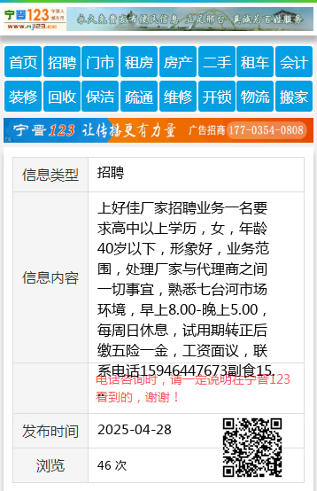 上好佳厂家招聘业务一名要求高中以上学历,女,年龄40岁以下,形象好,业务范围,处理厂家与代理商之间一切事宜,熟悉七台河市场环境,早上8.00-晚上5.00,每周日休息,试用期转正后缴五险一金,工资面议,联系电话15946447673副食15946447673 【电话咨询时,请一定说明在七台河信息网看到的,谢谢!】 |