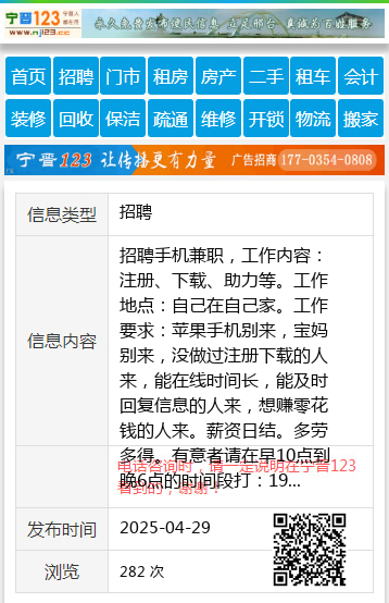 招聘手机兼职,工作内容:注册、下载、助力等。工作地点:自己在自己家。工作要求:苹果手机别来,宝妈别来,没做过注册下载的人来,能在线时间长,能及时回复信息的人来,想赚零花钱的人来。薪资日结。多劳多得。有意者请在早10点到晚6点的时间段打:19846273931(看清楚要求再打电话,非诚勿扰)J晴19846273931 【电话咨询时,请一定说明在七台河信息网看到的,谢谢!】 |