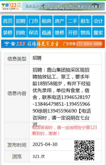招聘:鹿山集团抽采区现招聘抽放钻工、泵工,要求年龄18到58周岁,有井下经验优先录用,单位有食堂,宿舍,联系电话13946528197-13846479851-13945596690徐明13945596690 【电话咨询时,请一定说明在七台河信息网看到的,谢谢!】 |