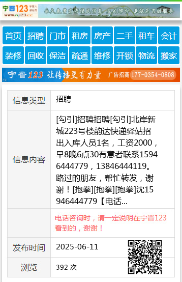 [勾引]招聘招聘[勾引]北岸新城223号楼韵达快递驿站招出入库人员1名,工资2000,早8晚6点30有意者联系15946444779,13846444119。路过的朋友,帮忙转发,谢谢![抱拳][抱拳][抱拳]沈15946444779 【电话咨询时,请一定说明在七台河信息网看到的,谢谢!】 |