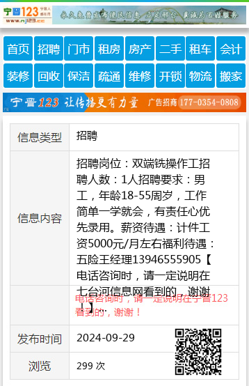 招聘岗位:双端铣操作工招聘人数:1人招聘要求:男工,年龄18-55周岁,工作简单一学就会,有责任心优先录用。薪资待遇:计件工资5000元/月左右福利待遇:五险王经理13946555905 【电话咨询时,请一定说明在七台河信息网看到的,谢谢!】 |