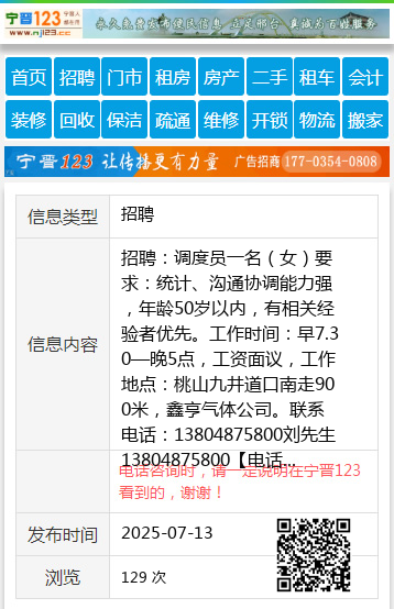 招聘:调度员一名(女)要求:统计、沟通协调能力强,年龄50岁以内,有相关经验者优先。工作时间:早7.30—晚5点,工资面议,工作地点:桃山九井道口南走900米,鑫亨气体公司。联系电话:13804875800刘先生13804875800 【电话咨询时,请一定说明在七台河信息网看到的,谢谢!】 |