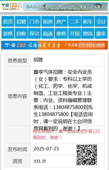 鑫亨气体招聘:安全内业员(女)要求:专科以上学历(化工、药学、化学、机戒制造、工业工程类专业)主管:内业、资料编辑管理联系电话:13804875800刘先生13804875800 【电话咨询时,请一定说明在七台河信息网看到的,谢谢!】 |