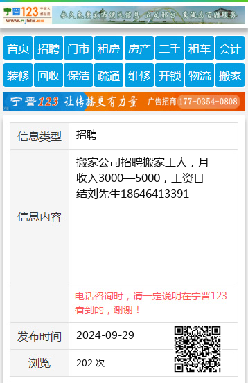 搬家公司招聘搬家工人,月收入3000—5000,工资日结刘先生18646413391