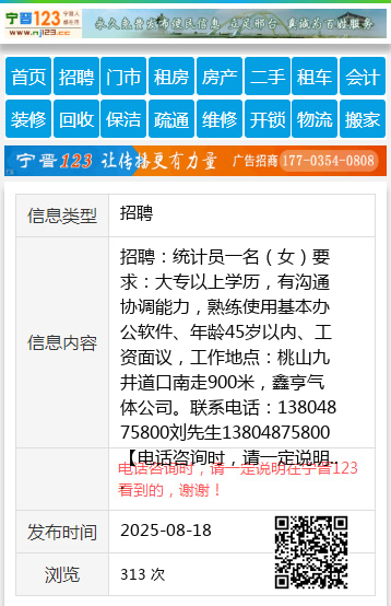 招聘:统计员一名(女)要求:大专以上学历,有沟通协调能力,熟练使用基本办公软件、年龄45岁以内、工资面议,工作地点:桃山九井道口南走900米,鑫亨气体公司。联系电话:13804875800刘先生13804875800 【电话咨询时,请一定说明在七台河信息网看到的,谢谢!】 |