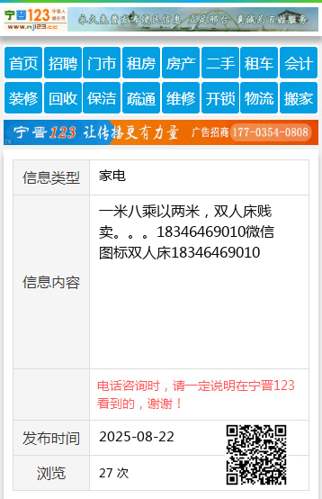 一米八乘以两米,双人床贱卖。。。18346469010微信图标双人床18346469010