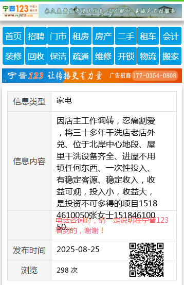 因店主工作调转,忍痛割爱,将三十多年干洗店老店外兑、位于北岸中心地段、屋里干洗设备齐全、进屋不用填任何东西、一次性投入、有稳定客源、稳定收入,收益可观,投入小,收益大,是投资不可多得的项目15184610050张女士15184610050 【电话咨询时,请一定说明在七台河信息网看到的,谢谢!】 |