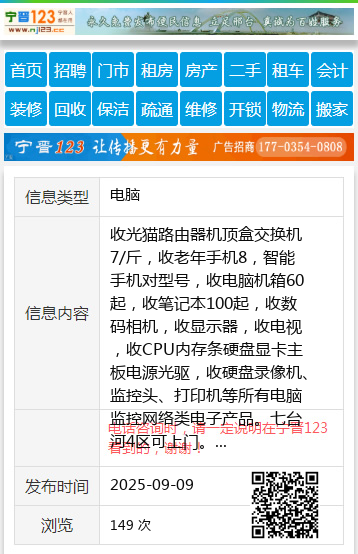 收光猫路由器机顶盒交换机7/斤,收老年手机8,智能手机对型号,收电脑机箱60起,收笔记本100起,收数码相机,收显示器,收电视,收CPU内存条硬盘显卡主板电源光驱,收硬盘录像机、监控头、打印机等所有电脑监控网络类电子产品。七台河4区可上门。专做价好,量大可溢价!电脑组装、升级、维修、做系统;安装监控、维修监控。批发零售各种配置电脑、笔记本、显示器及配件。设备安装调试、厂家技术支持、门店及仓储服务。店铺地址:北岸2号大道7号楼18-19商服陈经理13199232912 【电话咨询时,请一定说明在七台河信息网看到的,谢谢!】 |