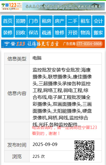 监控批发安装专业批发:海康摄像头,联想摄像头,康佳摄像头,三超摄像头承接各种监控工程,网络工程,弱电工程,综合布线,电子屏工程批发臻全彩摄像头,双画面摄像头,三画面摄像头,太阳能摄像头,硬盘录像机,网桥,网线,监控综合线,光纤,各种监控配件地址:茄子河区富贵园5号楼谦诚监控联系电话:1394653902613039799026孙14704644989 【电话咨询时,请一定说明在七台河信息网看到的,谢谢!】 |