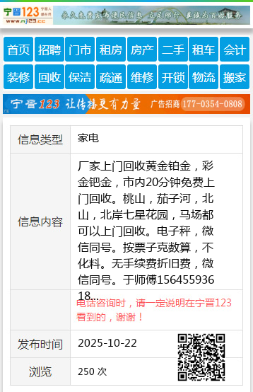 厂家上门回收黄金铂金,彩金钯金,市内20分钟免费上门回收。桃山,茄子河,北山,北岸七星花园,马场都可以上门回收。电子秤,微信同号。按票子克数算,不化料。无手续费折旧费,微信同号。于师傅15645593618 【电话咨询时,请一定说明在七台河信息网看到的,谢谢!】 |