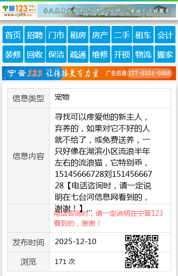 寻找可以疼爱他的新主人,弃养的,如果对它不好的人就不给了,或免费送养,一只好像在湖滨小区流浪半年左右的流浪猫,它特别乖,15145666728刘15145666728 【电话咨询时,请一定说明在七台河信息网看到的,谢谢!】 |