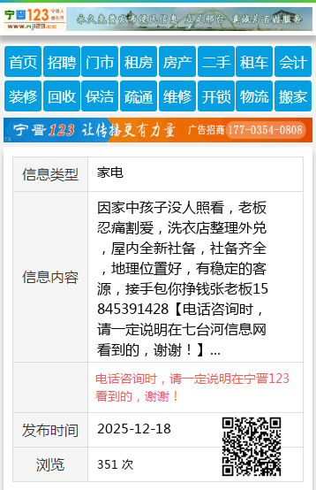 因家中孩子没人照看,老板忍痛割爱,洗衣店整理外兑,屋内全新社备,社备齐全,地理位置好,有稳定的客源,接手包你挣钱张老板15845391428 【电话咨询时,请一定说明在七台河信息网看到的,谢谢!】 |