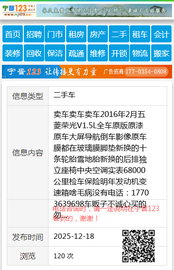 卖车卖车卖车2016年2月五菱荣光V1.5L全车原版原漆原车大屏导航倒车影像原车膜都在玻璃膜脚垫新换的十条轮胎雪地胎新换的后排独立座椅中央空调实表68000公里检车保险明年发动机变速箱啥毛病没有电话:17703639698车贩子不诚心买的勿扰王先生13664644442 【电话咨询时,请一定说明在七台河信息网看到的,谢谢!】 |