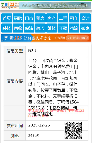 七台河回收黄金铂金,彩金钯金,市内20分钟免费上门回收。桃山,茄子河,北山,北岸七星花园,马场都可以上门回收。电子秤,微信转账。按票子克数算,不烧金,不化料。无手续费折旧费,微信同号。于师傅15645593618 【电话咨询时,请一定说明在七台河信息网看到的,谢谢!】 |
