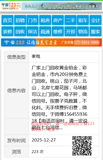 厂家上门回收黄金铂金,彩金钯金,市内20分钟免费上门回收。桃山,茄子河,北山,北岸七星花园,马场都可以上门回收。电子秤,微信同号。按票子克数算,不化料。无手续费折旧费,微信同号。于师傅15645593618 【电话咨询时,请一定说明在七台河信息网看到的,谢谢!】 |