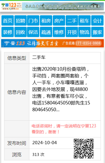 出售2020年10月份桑塔纳,手动挡,两套圈两套胎,个人一手车,小车嘎嘎透溜,因要去外地发展,现48800出售,有意者看车可小议,电话15804645050郎先生15804645050 【电话咨询时,请一定说明在七台河信息网看到的,谢谢!】 |