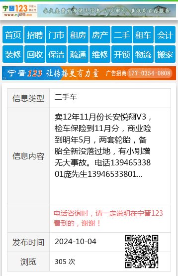 卖12年11月份长安悦翔V3,检车保险到11月分,商业险到明年5月,两套轮胎,备胎全新没落过地,有小剐蹭无大事故。电话13946533801庞先生13946533801