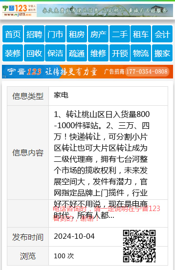 1、转让桃山区日入货量800-1000件驿站。2、三万、四万!快递转让,可分割小片区转让也可大片区转让成为二级代理商,拥有七台河整个市场的揽收权利,未来发展空间大,发件有潜力,官网指定品牌上门揽件,行业好不好不用说,现在是电商时代,所有人都网购,机会难得,口碑好品牌大,货量高。有兴趣请拨打15645570345刘经理15946420992 【电话咨询时,请一定说明在七台河信息网看到的,谢谢!】 |