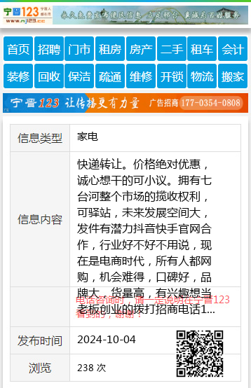 快递转让。价格绝对优惠,诚心想干的可小议。拥有七台河整个市场的揽收权利,可驿站,未来发展空间大,发件有潜力抖音快手官网合作,行业好不好不用说,现在是电商时代,所有人都网购,机会难得,口碑好,品牌大,货量高,有兴趣想当老板创业的拨打招商电话13946516433经理15645570345 【电话咨询时,请一定说明在七台河信息网看到的,谢谢!】 |