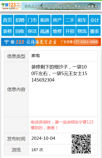 装修剩下的细沙子,一袋100斤左右,一袋5元王女士15145692304
