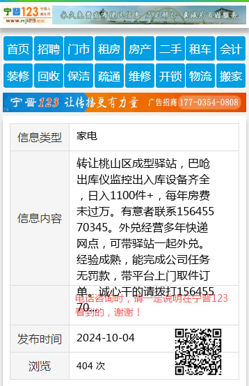 转让桃山区成型驿站,巴呛出库仪监控出入库设备齐全,日入1100件+,每年房费未过万。有意者联系15645570345。外兑经营多年快递网点,可带驿站一起外兑。经验成熟,能完成公司任务无罚款,带平台上门取件订单。诚心干的请拨打15645570345万宝招聘驿站理货员,工作轻松,待遇优,联系电话微信15604648668刘经理15645570345 【电话咨询时,请一定说明在七台河信息网看到的,谢谢!】 |