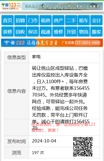 转让桃山区成型驿站,巴槍出库仪监控出入库设备齐全,日入1100件+,每年房费未过万。有意者联系15645570345。外兑经营多年快递网点,可带驿站一起外兑。经验成熟,能完成公司任务无罚款,带平台上门取件订单。诚心干的请拨打15645570345万宝招聘驿站理货员,工作轻松,待遇优,联系电话微信15604648668刘经理15645570345 【电话咨询时,请一定说明在七台河信息网看到的,谢谢!】 |