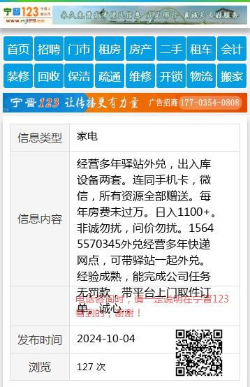 经营多年驿站外兑,出入库设备两套。连同手机卡,微信,所有资源全部赠送。每年房费未过万。日入1100+。非诚勿扰,问价勿扰。15645570345外兑经营多年快递网点,可带驿站一起外兑。经验成熟,能完成公司任务无罚款,带平台上门取件订单。诚心干的请拨打15645570345经理15645570345 【电话咨询时,请一定说明在七台河信息网看到的,谢谢!】 |