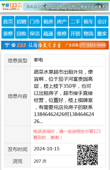 蔬菜水果超市出租外兑,便宜啊,位于茄子河富贵园高层,楼上楼下350平,也可以出租房子,超市接手直接经营,位置好,楼上棋牌室,有需要兑店兑房子的联系13846462426何13846462426 【电话咨询时,请一定说明在七台河信息网看到的,谢谢!】 |
