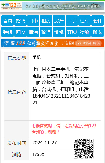 上门回收二手手机,笔记本电脑,台式机,打印机,上门回收报废手机,笔记本电脑,台式机,打印机,电话184046423211118404642321 【电话咨询时,请一定说明在七台河信息网看到的,谢谢!】 |