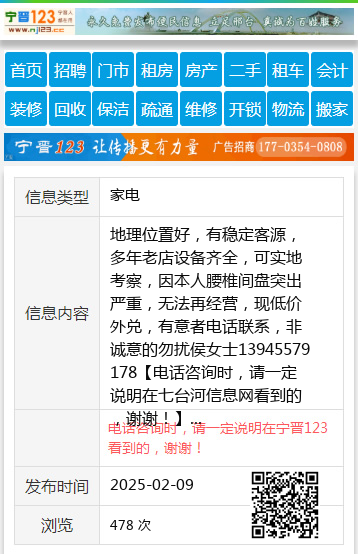 地理位置好,有稳定客源,多年老店设备齐全,可实地考察,因本人腰椎间盘突出严重,无法再经营,现低价外兑,有意者电话联系,非诚意的勿扰侯女士13945579178 【电话咨询时,请一定说明在七台河信息网看到的,谢谢!】 |