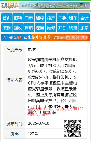 收光猫路由器机顶盒交换机7/斤,收手机8起,收电脑机箱60起,收笔记本90起,收数码相机,收打印机,收CPU内存条硬盘显卡主板电源光驱显示器,收硬盘录像机、监控头等所有电脑监控网络类电子产品。台河四区可上门。专做价好,量大可溢价!电脑组装、升级、维修、做系统;安装监控、维修监控。批发零售各种配置电脑、笔记本、显示器及配件。设备安装调试、厂家技术支持、门店及仓储服务。店铺地址:北岸2号大道7号楼18-19商服陈经理13199232912 |